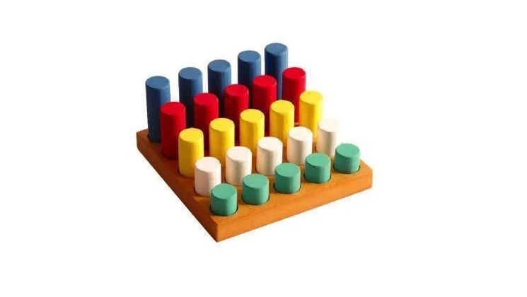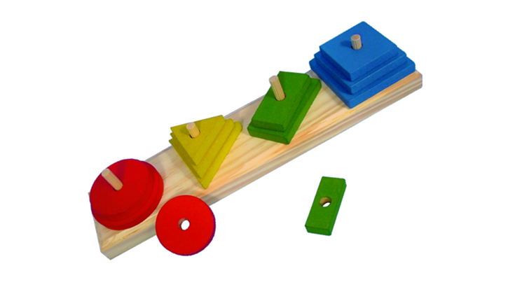 001-0028 Barra de figuras geométricas com pinos Desenvolver a coordenação motora, a atenção, a concentração, a distinção de cores, formas e tamanhos e o raciocínio lógico. 1 - Jogos confeccionados