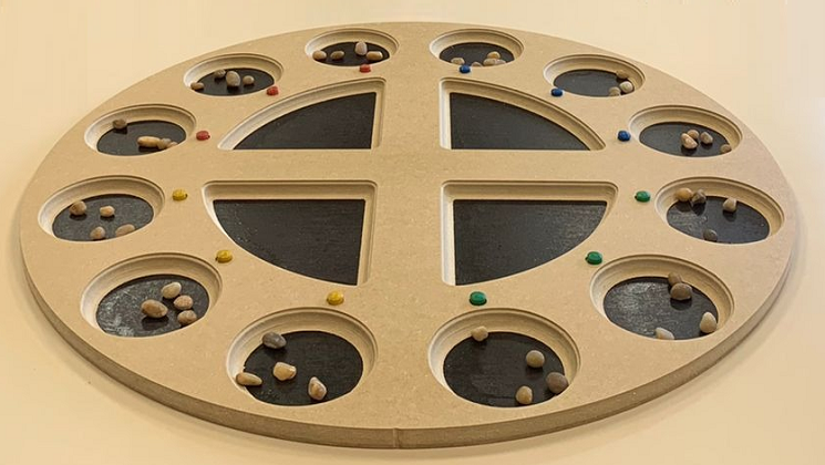 003-0005 Mancala gigante Colher o maior número de sementes possível. Vence o jogo aquele que colher mais sementes. 2 a 4 - Materiais pedagógicos