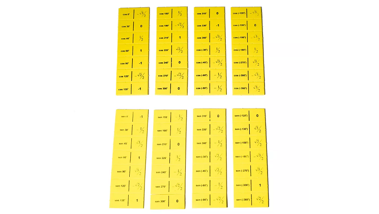 001-0004 Trigominó Levar os estudantes a fixarem os valores do seno, cosseno e tangente dos arcos notáveis na primeira determinação positiva do ciclo trigonométrico de maneira ludica. 2 a 8